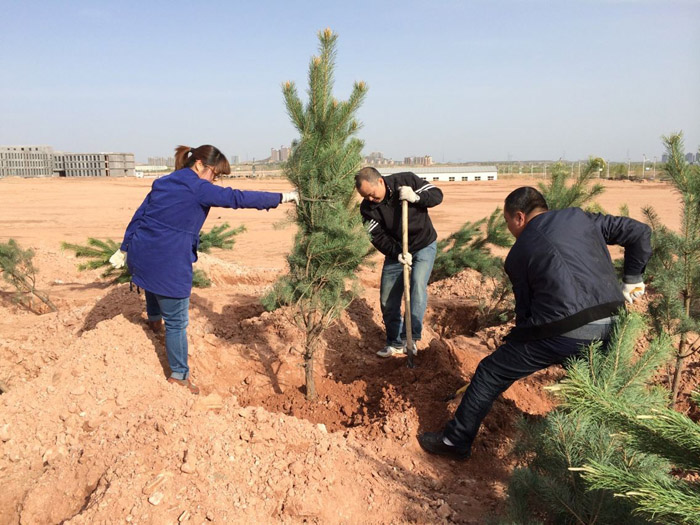 為即將啟動的鄂爾多斯久科節能環保產業園區能有一個優美的工作環境,4月26日在不占用正常上班時間的情況下,并且為了保證樹苗在最好的時間內下種,確保成活率,久科環保全體員工集體出動,加班加點,披星戴月,趕在樹苗成活的最佳時節里開展并圓滿完成植樹造林、綠化園區活動,累計植樹2226顆,覆蓋廠區各個角落,放眼望去,一排排樹苗拔地而起,使園區生機盎然,滿眼綠色。