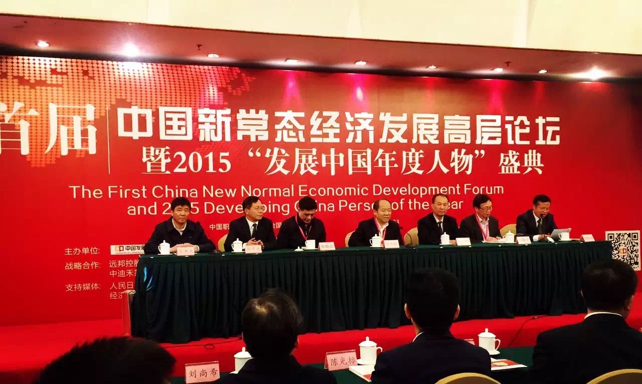 2016年4月23日,由國家發改委中國經濟導報社、國家發改委中國發展網主辦的首屆中國新常態經濟發展高層論壇暨2015“發展中國年度人物”盛典在北京釣魚臺國賓館/中國職工之家隆重舉行。全同政協第十一屆副主席阿不來提·阿不都熱西提發來賀信,國家發展改革委原副主任、中國國際經濟交流中心副理事張曉強、中央政策研究室原副主任、中國國際經濟交流中心副理事長鄭新立、中國人民銀行研究局首席研究員鄒平座、國家發展改革委宏觀經濟研究院副院長馬曉河作論壇主旨演講,來自產學研究等各領域的數百位嘉賓出席了本屆論壇。